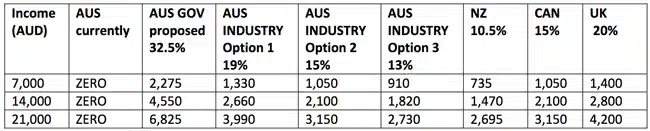 Lower the proposed marginal rate of tax on declarable earnings up to AUS$80,000 from 32.5% to 15% or 13% (this is on par with tax schemes for other categories of seasonal workers in Australia);